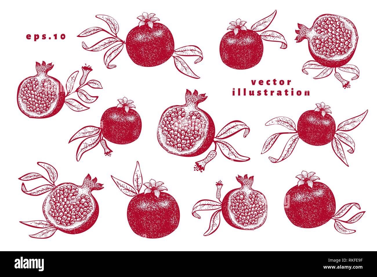 Pomegranate Fruit Illustrations Set Hand Drawn Vector Fruit Illustrations Engraved Style Vintage Botanical Background Can Be Use For Design Menu Packaging Recipes Market Products Stock Vector Image Art Alamy